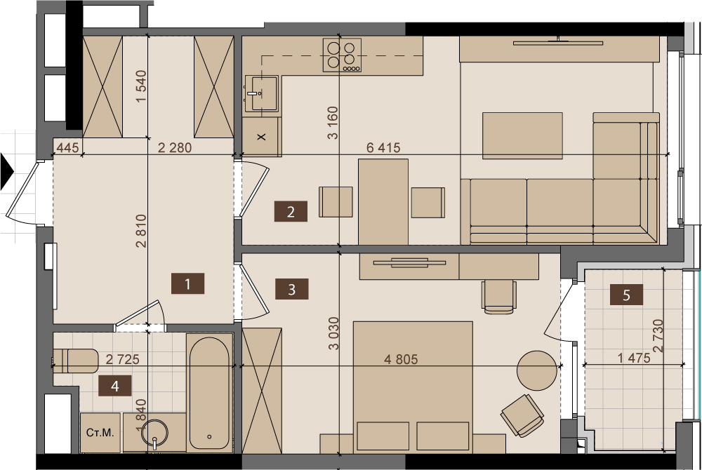 1К 52,5 м2