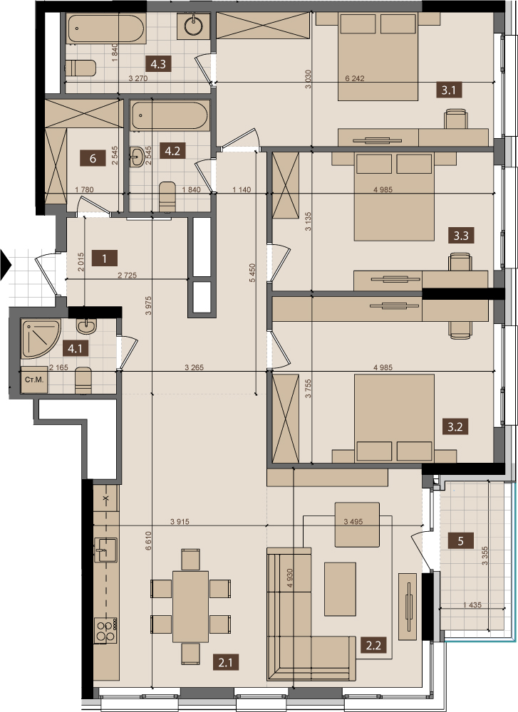 3К 130,8 м2
